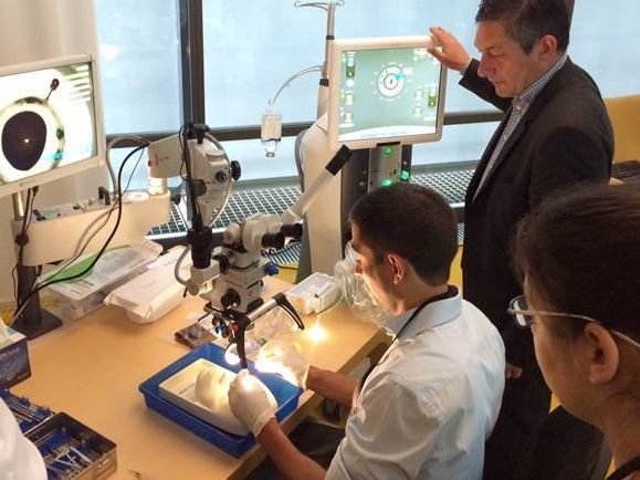 Unter den wachsamen Blicken von Kollegen testet Dr. Mazinani die innovative Bausch + Lomb Technologie Vitesse™